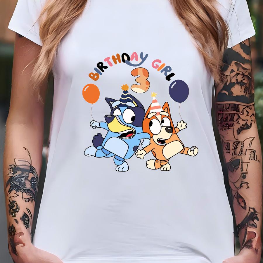 Bingo Blue Dog Birthday Girl Shirt, Custom Name Age Shirt And Sweatshirt, Blue Dog Party Outfit, Kids Birthday Gift, Girl Birthday Shirt T-shirt