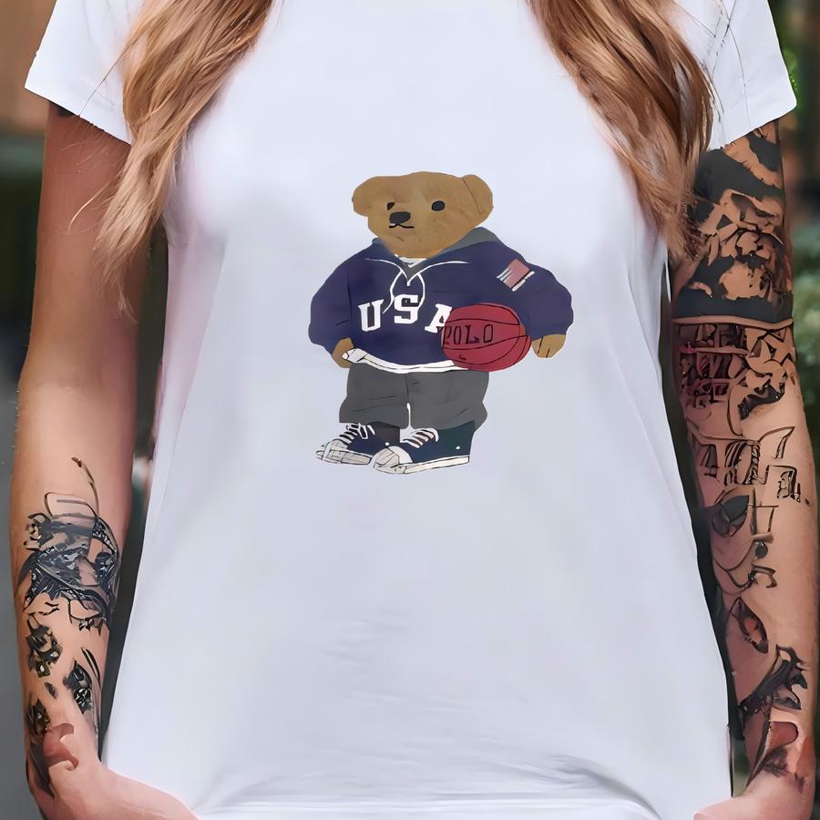 Vintage 90s Polo Ralph Lauren Hoodie Polo Bear Single Stitch Print Logo White Large T-shirt
