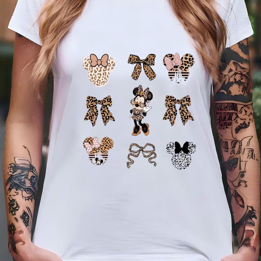 Cute Mouse Leopard Coquette Bow Sweatshirt, Girls Sweater, Mouse Bow Hoodie, Land Girls Trip Magic Kingdom Park T-shirt