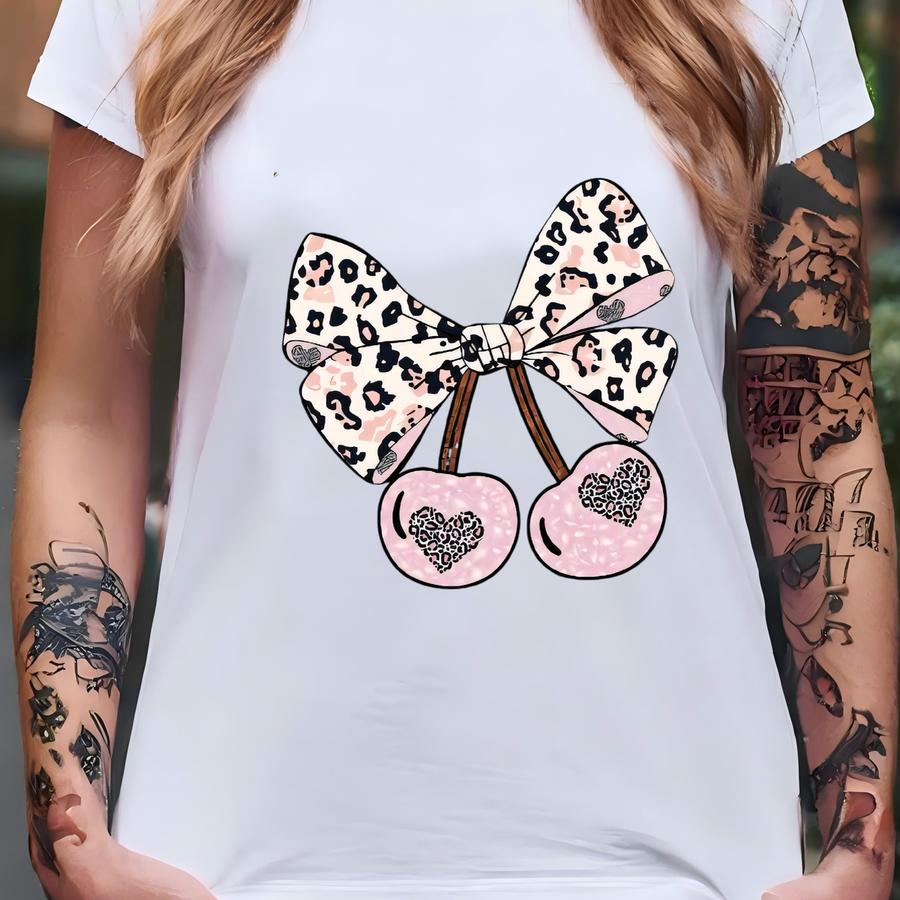 Coquette Leopard Cherries Sweatshirt, Cute Coquette Shirt, Coquette Bow Cherry For Women Sweatshirt, Girly Pink Leopard Cherry Hoodie T-shirt