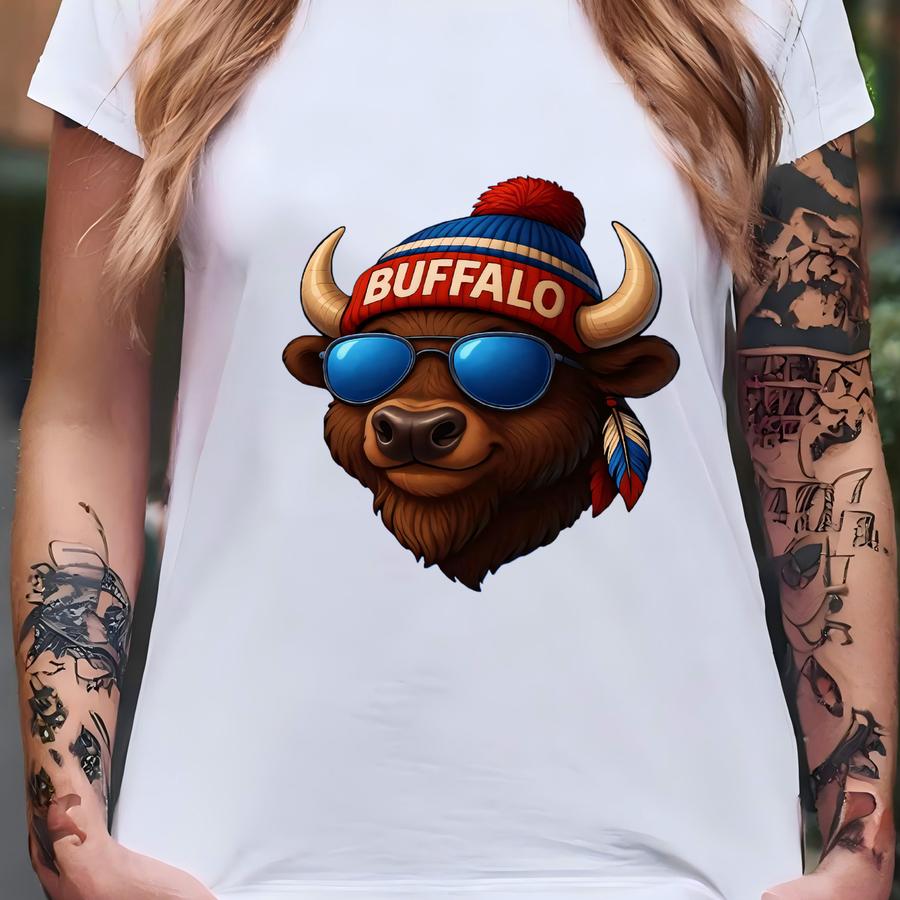 Buffalo Mascot Kids Shirt, Cartoon Bison With Sunglasses Tee, Fun Game Day Youth Sweatshirt, Buffalo Football Kids Fan Shirt T-shirt