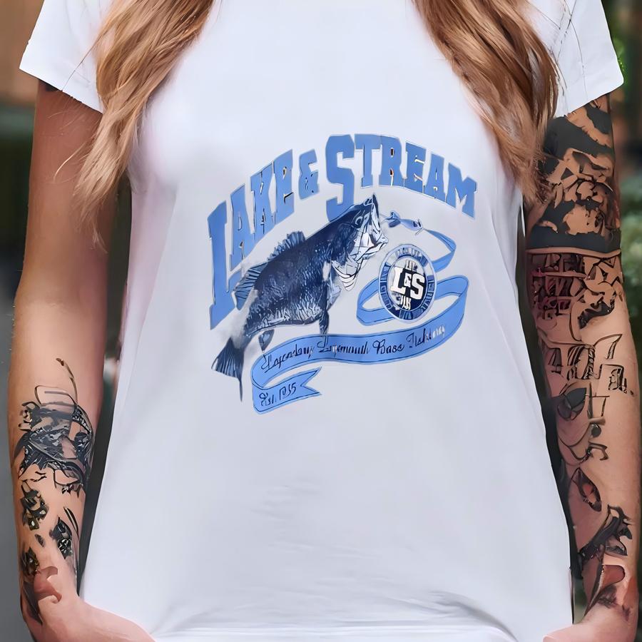 Vintage Fishing Outdoor Outfitters Sweatshirt Largemouth Bass Crewneck Just Hook It Sweater Pullover Trout Fish Lake Stream Print Logo Large T-shirt