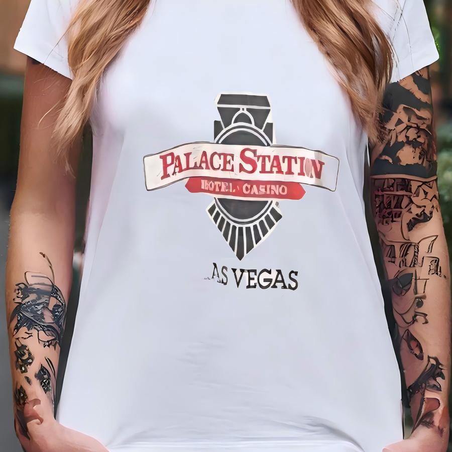 Vintage 1980's Palace Station Las Vegas Graphic Hoodie Sz L S/s Single Stitch T-shirt
