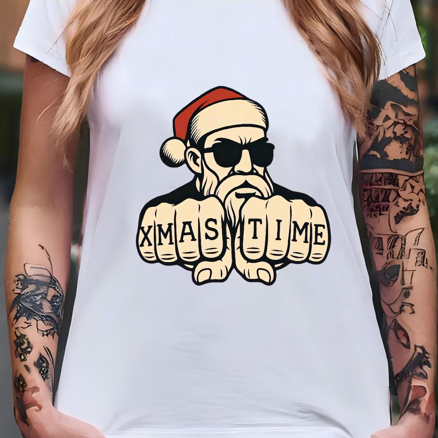 Christmas Sweatshirt: Cool Santa Christmas Shirt – Funny Bad Santa Xmas Time Graphic Sweater – Retro Tattoo Style Holiday Shirt T-shirt