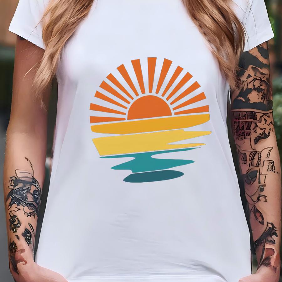 Retro Sunset Graphic Sweatshirt: Cozy Outdoor Sweater T-shirt