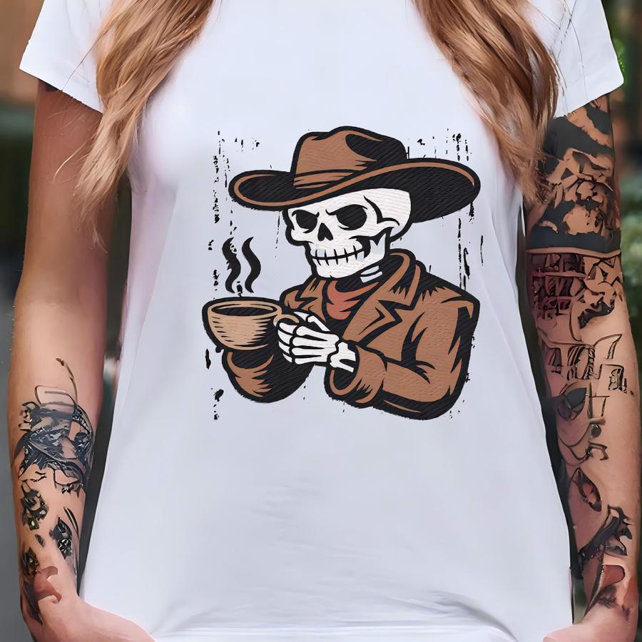 Skeleton Coffee Hoodie: Spooky Fall Halloween Tee T-shirt