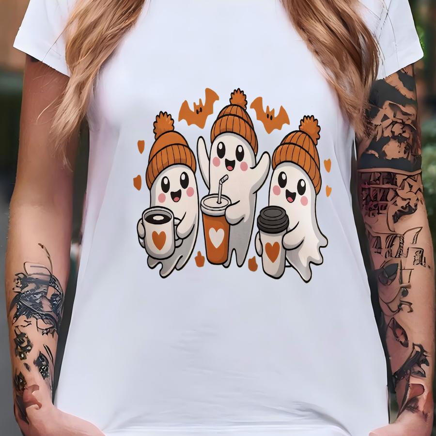 Cute Spooky Coffee Sweatshirt, Womens Ghost Sweatshirt, Spooky Season, Fall Coffee Lover Shirt, Halloween Party Shirt, Fall Graphic Shirt T-shirt