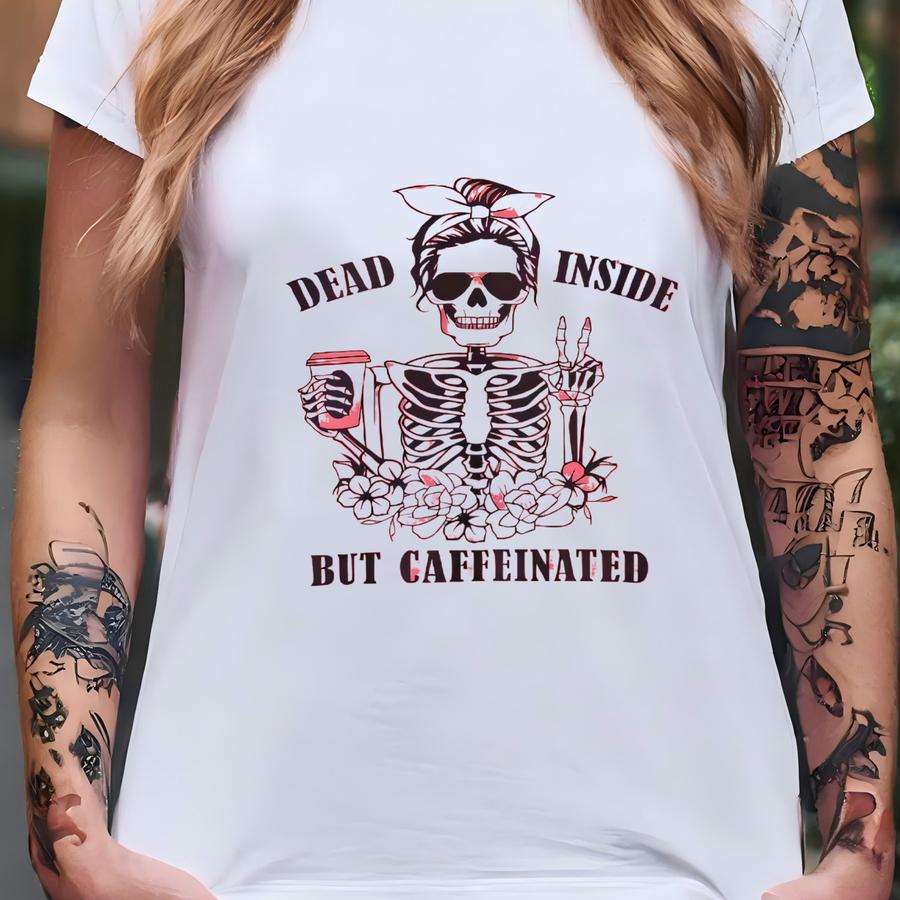 Caffeine Addict Sweatshirt, Coffee Lover Gift, Dead Inside Unisex Crewneck, Mom Needs Caffeine Jumper, Tired Mom Top, Funny Graphic Pullover T-shirt