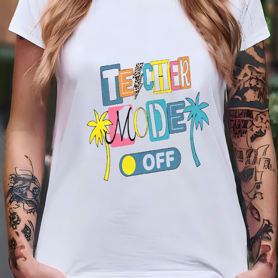 Teacher Mode Off. Fun Colorful End Of School Year Design. Png Easy To Use Svg Cut File. Sublimation. Schools Out. Teacher Shirt. Gift Idea T-shirt