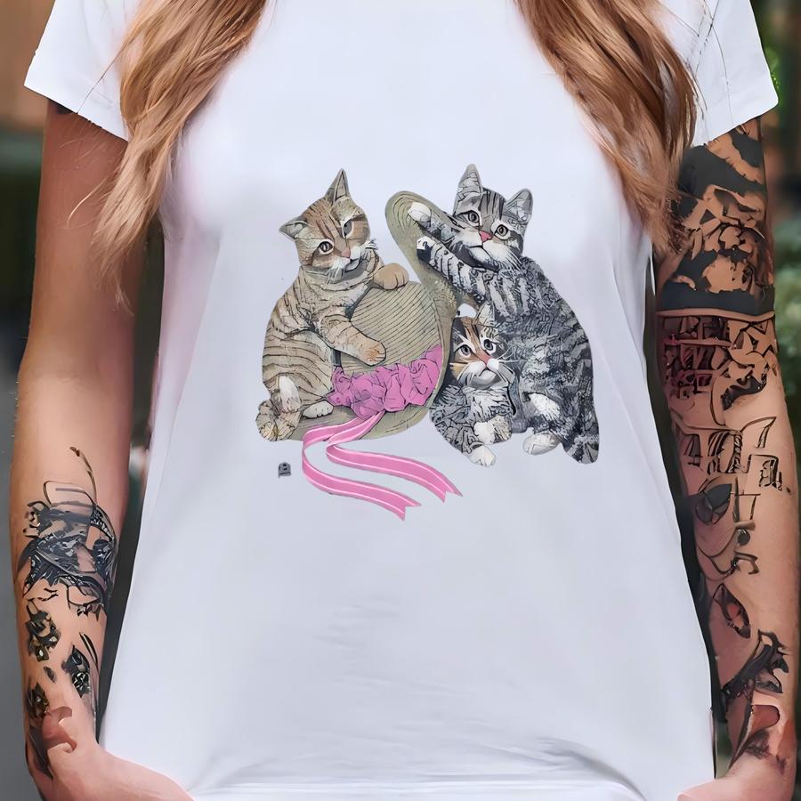 Vintage 90s Cute Cat Kitten Sweatshirt Large Cute Kitten Hat Graphics Print Kitsch Sweater Cat Lover Jumper Cat Pet Animal Crewneck Size L T-shirt