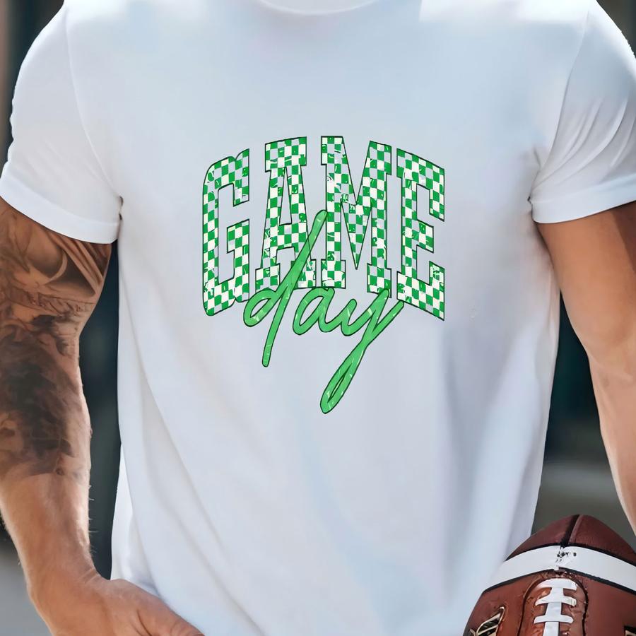 Game Day Sweatshirt: Ash Gray Cotton-blend, Green Design T-shirt