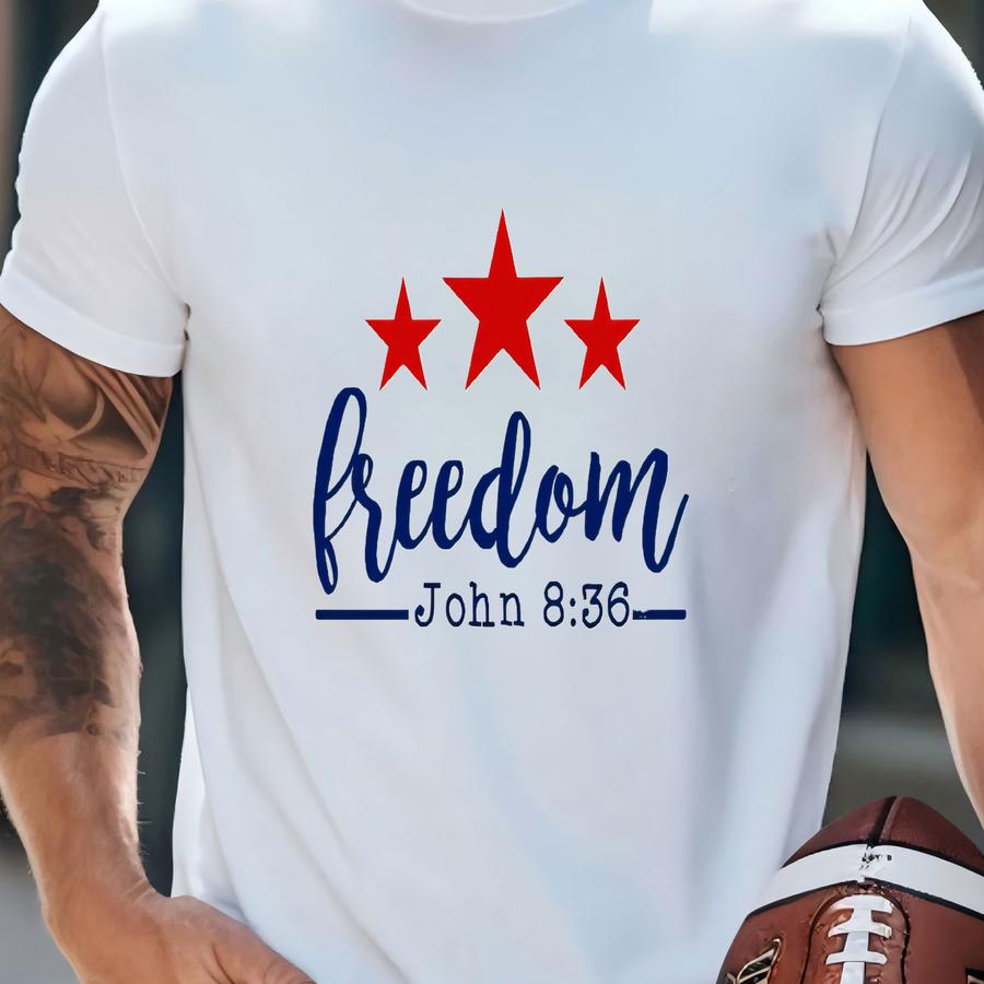 Christian 4th Of July Shirt Freedom John 8:36 T-shirt