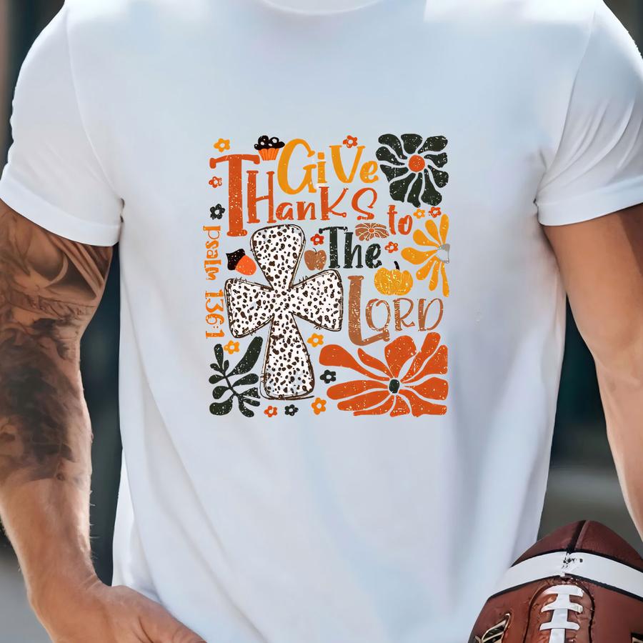 Give Thanks To The Lord Shirt, Floral Thankful Tee, Christian Thanksgiving Hoodie, Psalm 136:1 Shirt, Thanksgiving Gifts, Pumpkin Hoodie T-shirt