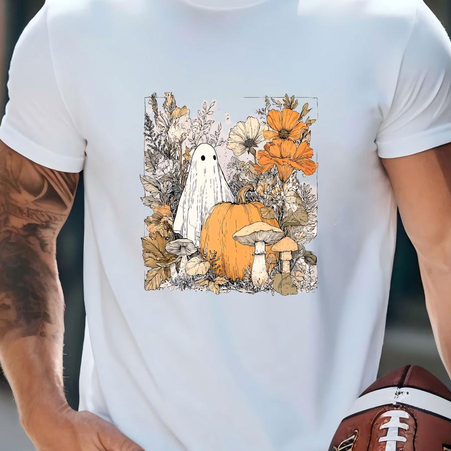 Boho Floral Ghost Halloween Tee: Spooky Pumpkin Season Shirt T-shirt