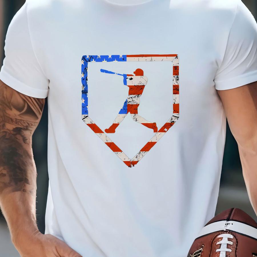 American Flag Baseball Player Shirt: Patriotic Game Day Tee T-shirt