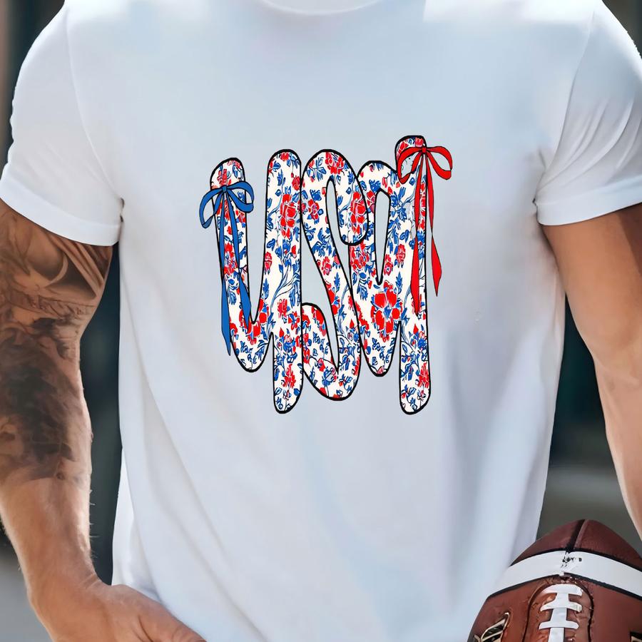 Floral Usa Coquette Shirt: 4th Of July Independence Day Tee T-shirt