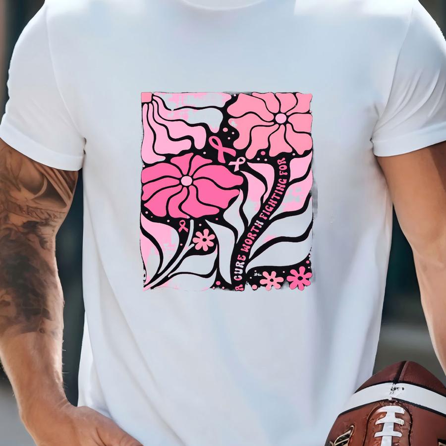 Cancer Awareness Shirt: A Cure Worth Fighting For Tee, Floral Breast Cancer Support Gift T-shirt