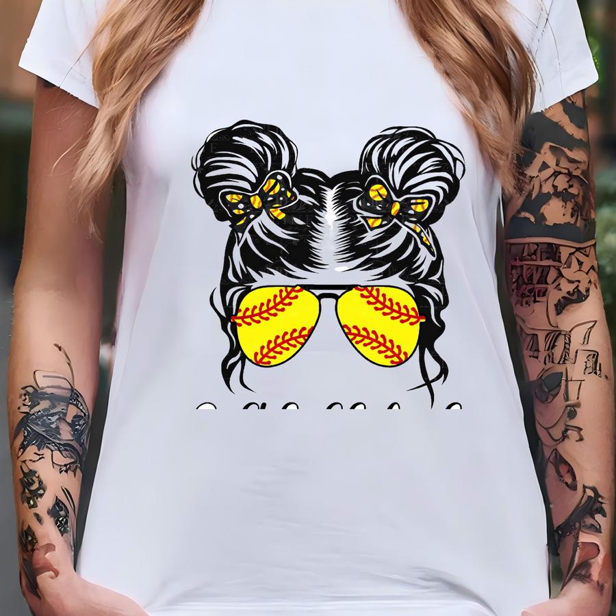 Softball Girl Messy Bun Pigtail. Instant Digital Download. Shirt Design, Sublimation, Svg, Cut File, Png, D, Shirt Softball Life T-shirt