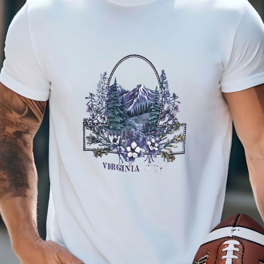 Vintage 90s Virginia City Hoodie Size L Mountain Floral Nature Scene Nevada Souvenir Tourist Tee Western Town Scoop Neck Travel Vacation T-shirt