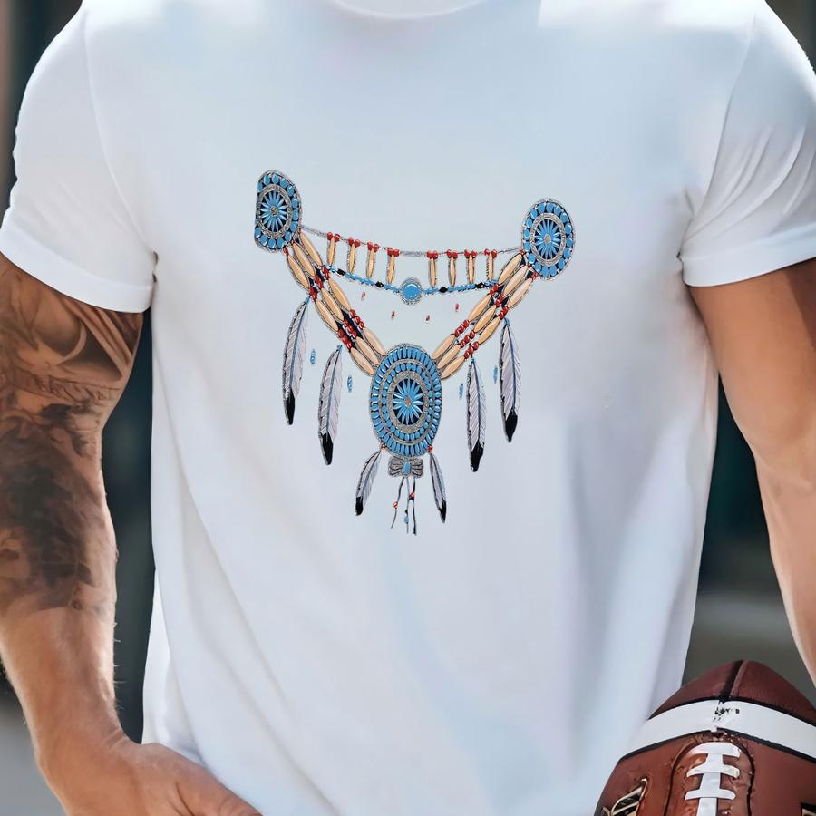 Vintage 90s Native American Necklace Hoodie Size Xl Southwestern Art Tee Beaded Feathers Puffy Print Indigenous Jewelry Tribal Graphic T-shirt