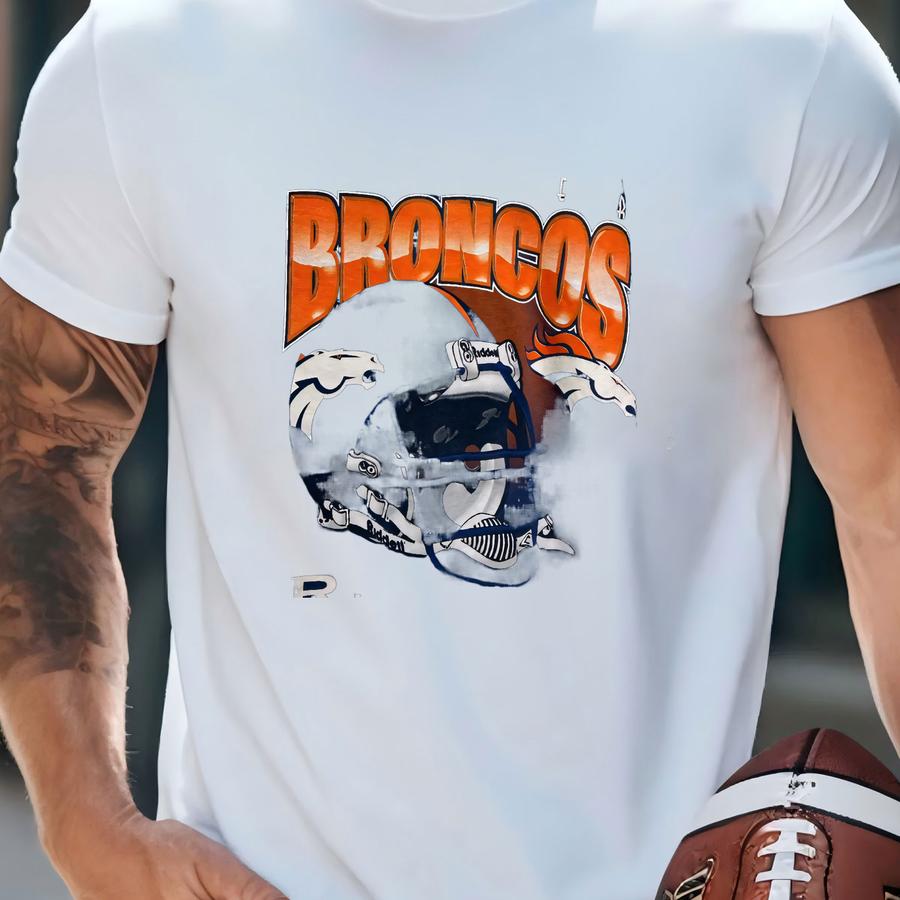 Vintage 90s Denver Broncos Hoodie Size L Riddell Helmet Art Tee Football Pro Sports Big Logo Fan Apparel Mile High Colorado Graphic Tee T-shirt