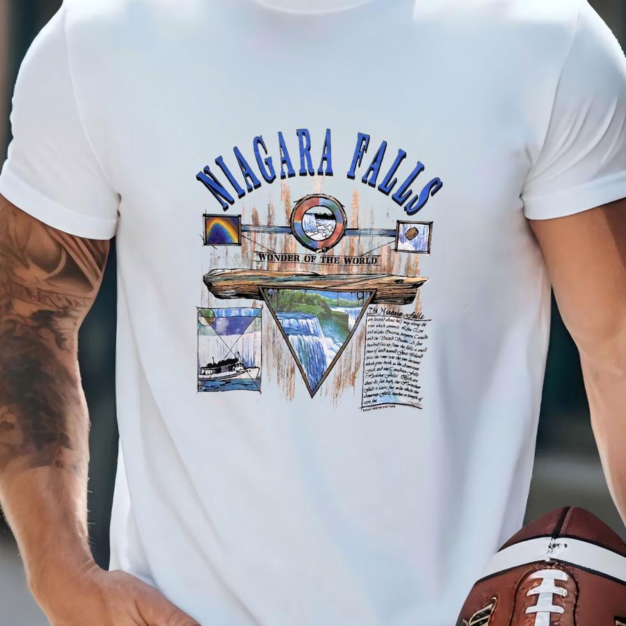 Vintage 90s Niagara Falls Wonder Of The World Hoodie Size L Randy Martin Art Tee New York Canada Souvenir Travel Tourist Nature Landmark T-shirt