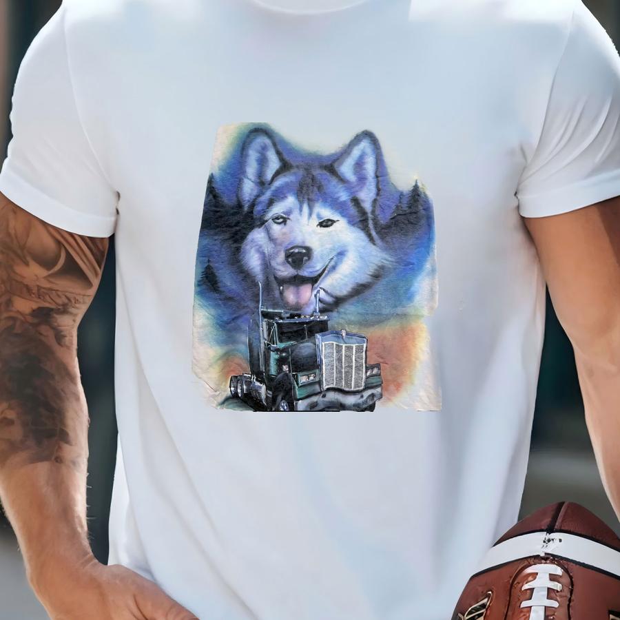Vintage 1990s Airbrush Husky Dog Truck Graphic Tee Big Face Animal Print Wolf Semi Truck Art Design Retro American Roadwear Shirt Size 2xl T-shirt
