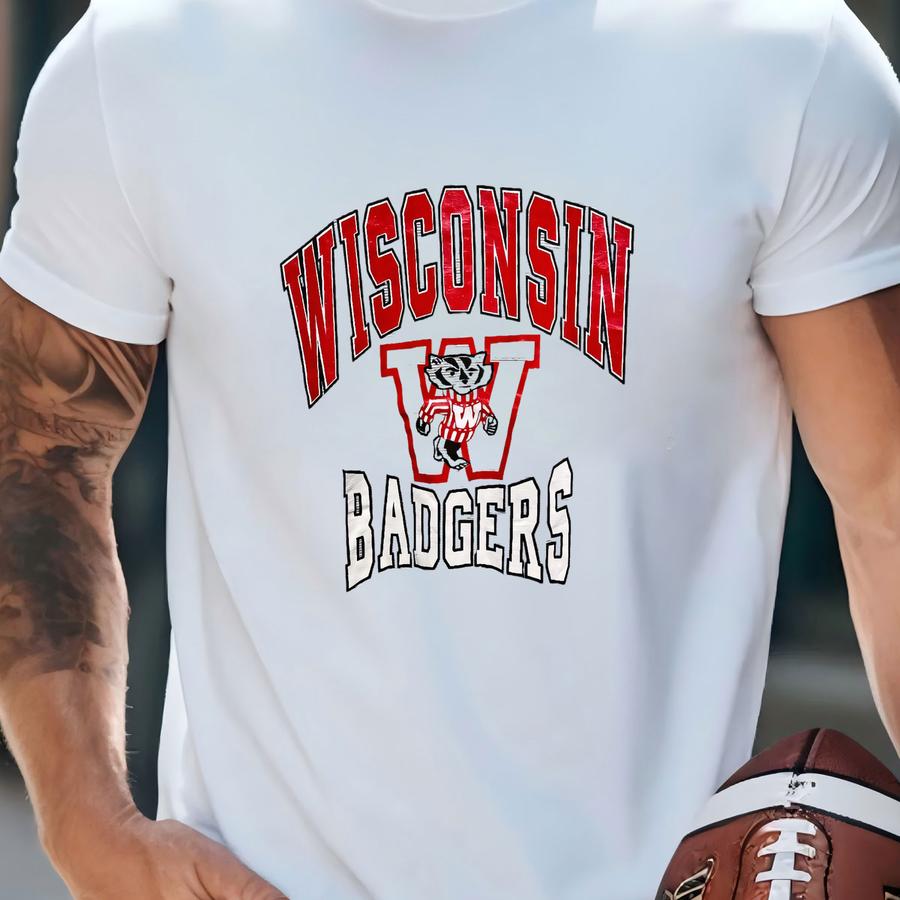 Vintage 1990s Badgers University College Mascot Bucky Logo Striped Gray Graphic Tee Retro Sports Ncaa Big Ten School Shirt Size L T-shirt