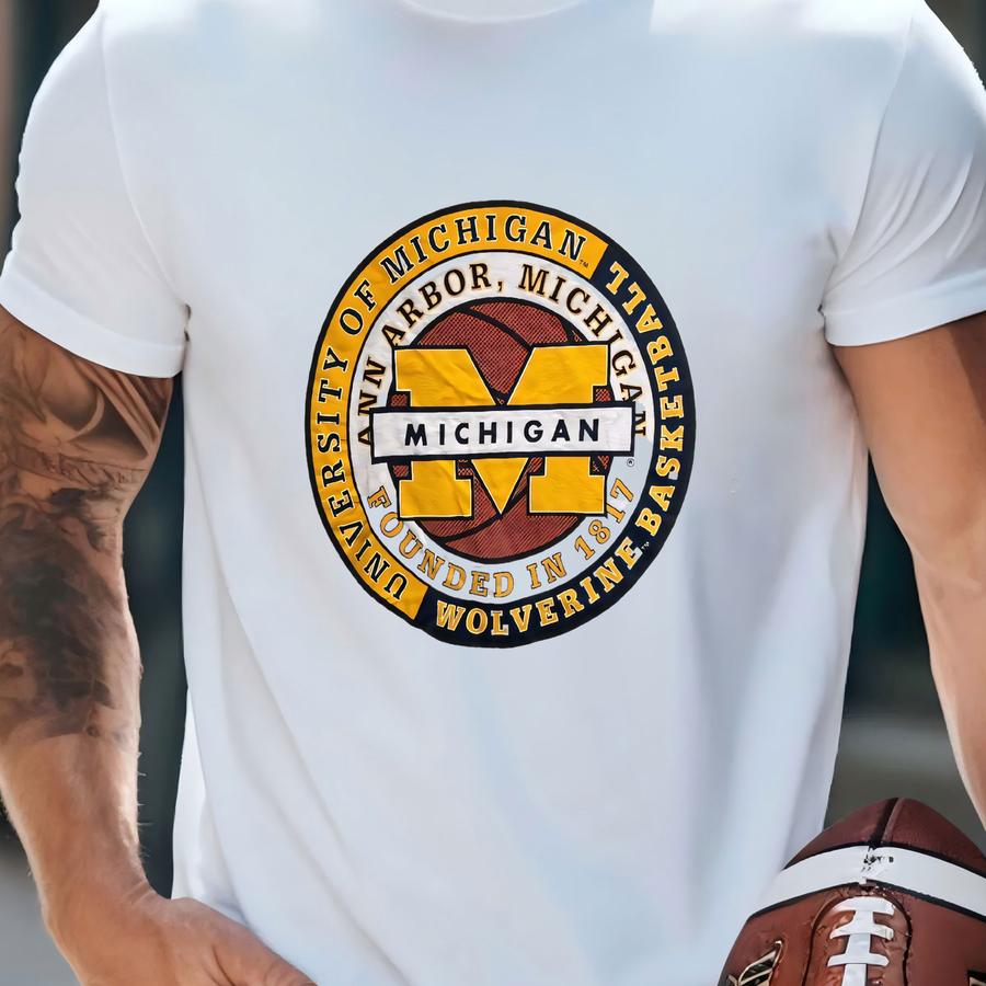Vintage 1990 Michigan Wolverines Basketball University Team Logo Double Sided College Sports Ncaa Graphic Tee Retro School Shirt Size Xl T-shirt