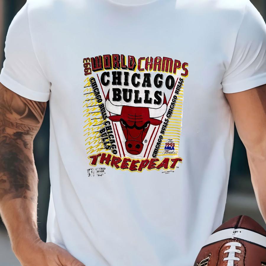 Vintage 1993 Chicago Bulls Threepeat Hoodie Size 2xl World Champs Finals Basketball M Sportswear Big Logo Caricature T-shirt