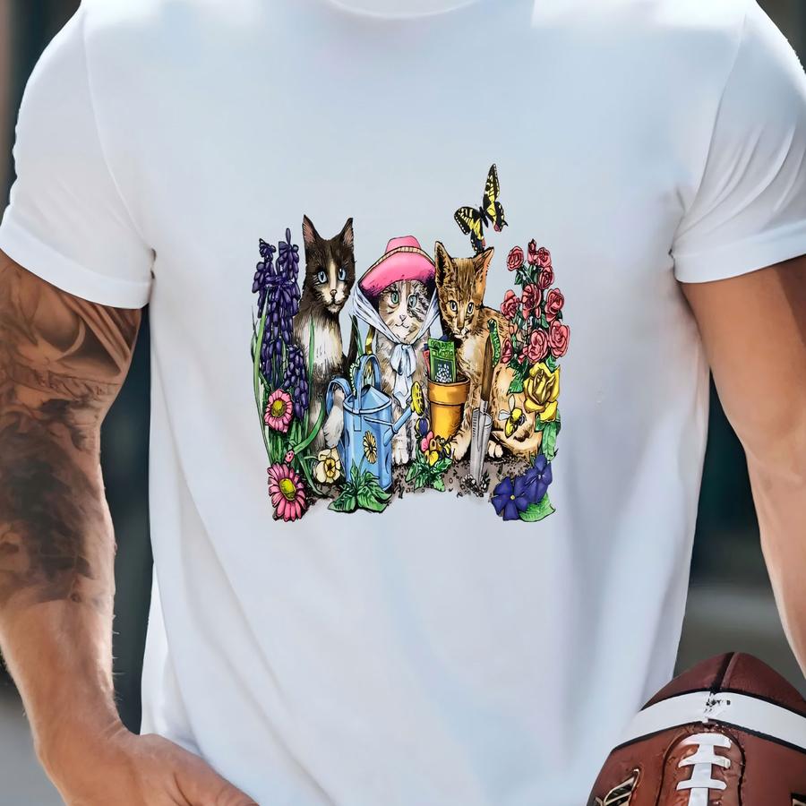 Vintage 90s Prints Of Tails Hoodie One Size Fit All Cat Kitten Garden Art Tee Double Sided Flower Butterfly Cute Animal Pet Lover Whimsical T-shirt