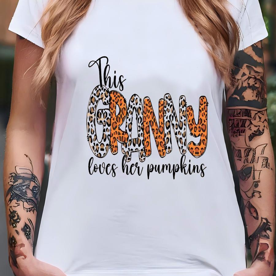 Granny Loves Her Pumpkins Png Svg, Fall Leopard Grandma Design. Custom Name Graphic. Personalize Grandkids, Kids, Family. Add Your Own Text. T-shirt