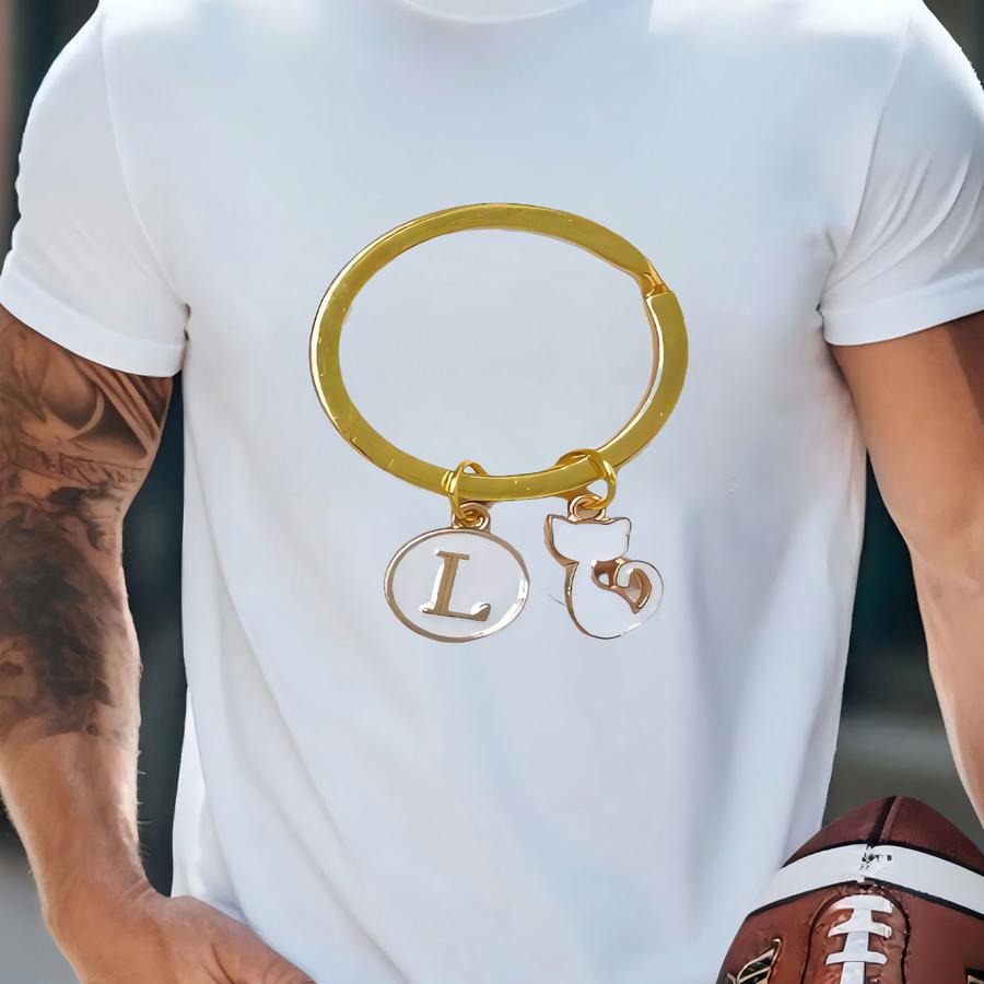 Cat Keychain Gold Initial Letter Cat Charm Gold Key Chain Aesthetic Accessories Initial Key Ring Personalized Keychain Bridesmaid Gift T-shirt