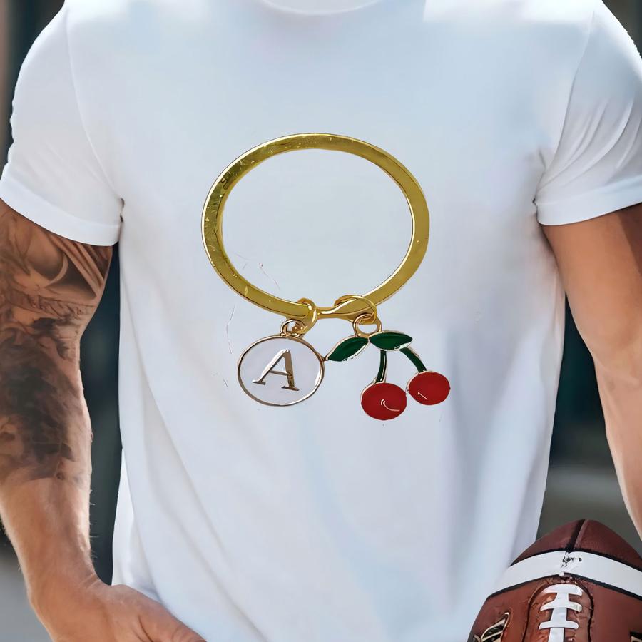 Cherry Keychain Gold Initial Letter Charm Gold Key Chain Aesthetic Accessories Initial Key Ring Personalized Keychain Bridesmaid Gift T-shirt