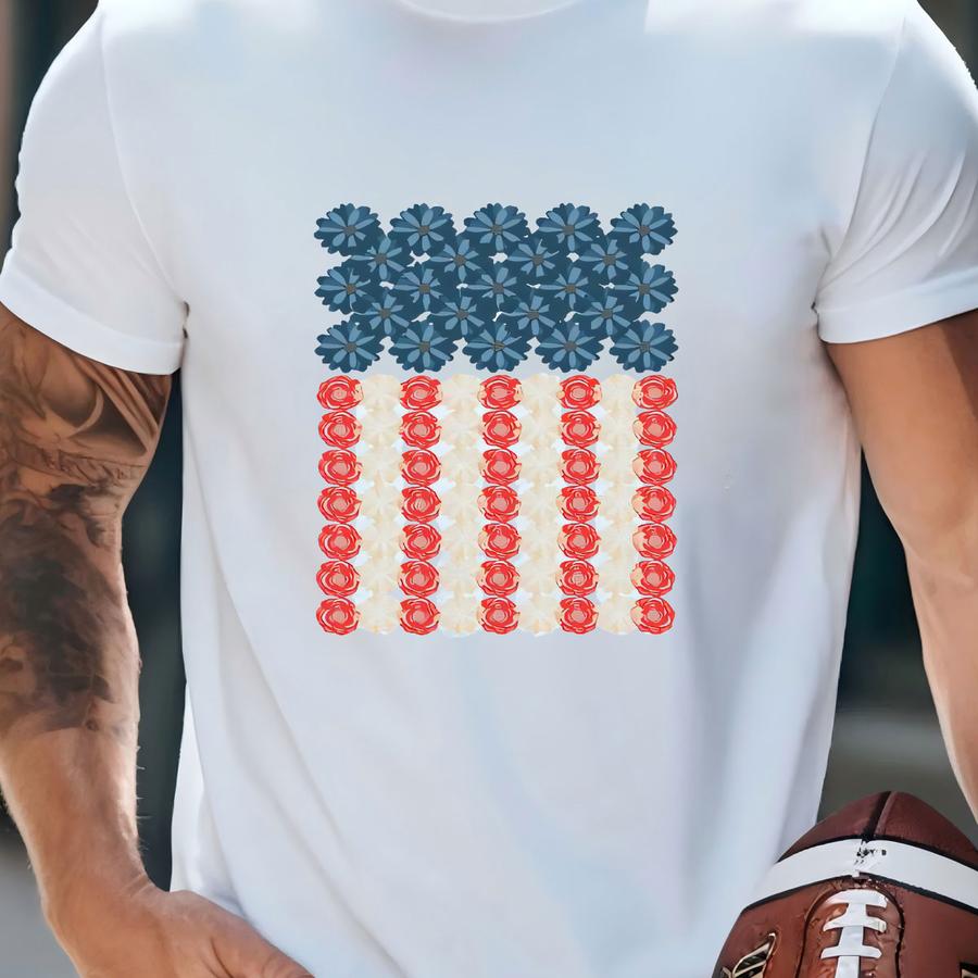 Floral American Flag Tee - Patriotic Bella Canvas Shirt T-shirt