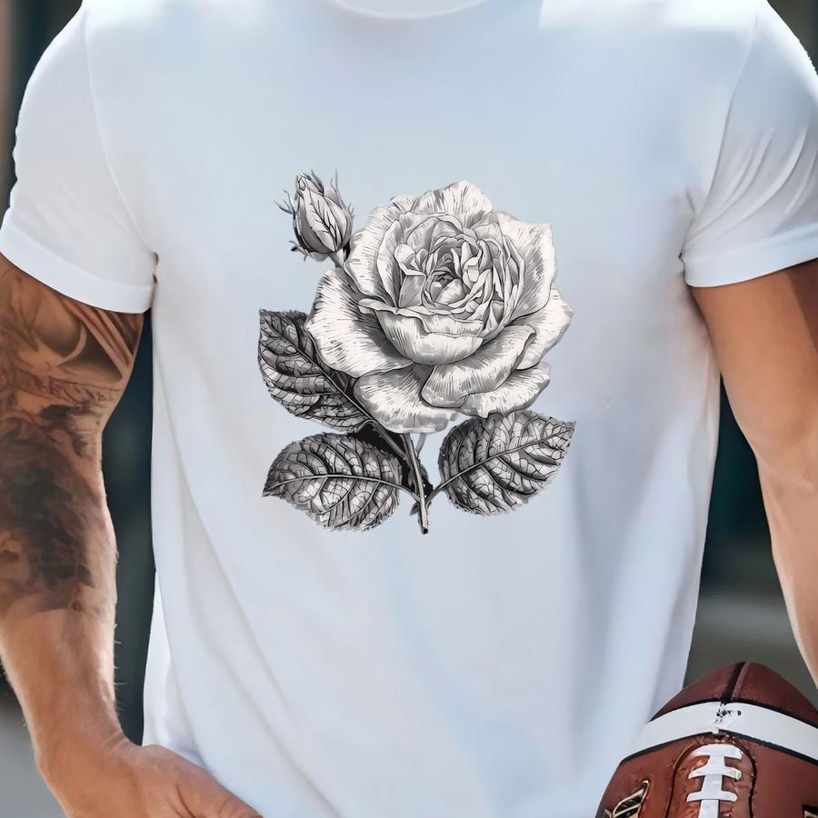 Unique Rose Tee, Grayscale Rose, Black And White Rose Design On Premium Unisex Shirt, 3 Color Choices, 2x, 3x, 4x, Plus Sizes Available T-shirt