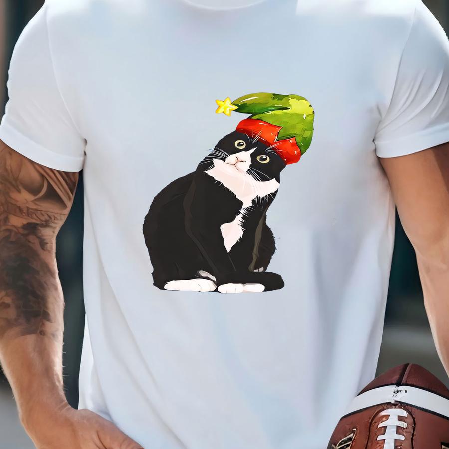Christmas Cat Tee: Tuxedo Cat With Elf Hat, Unisex Shirt T-shirt