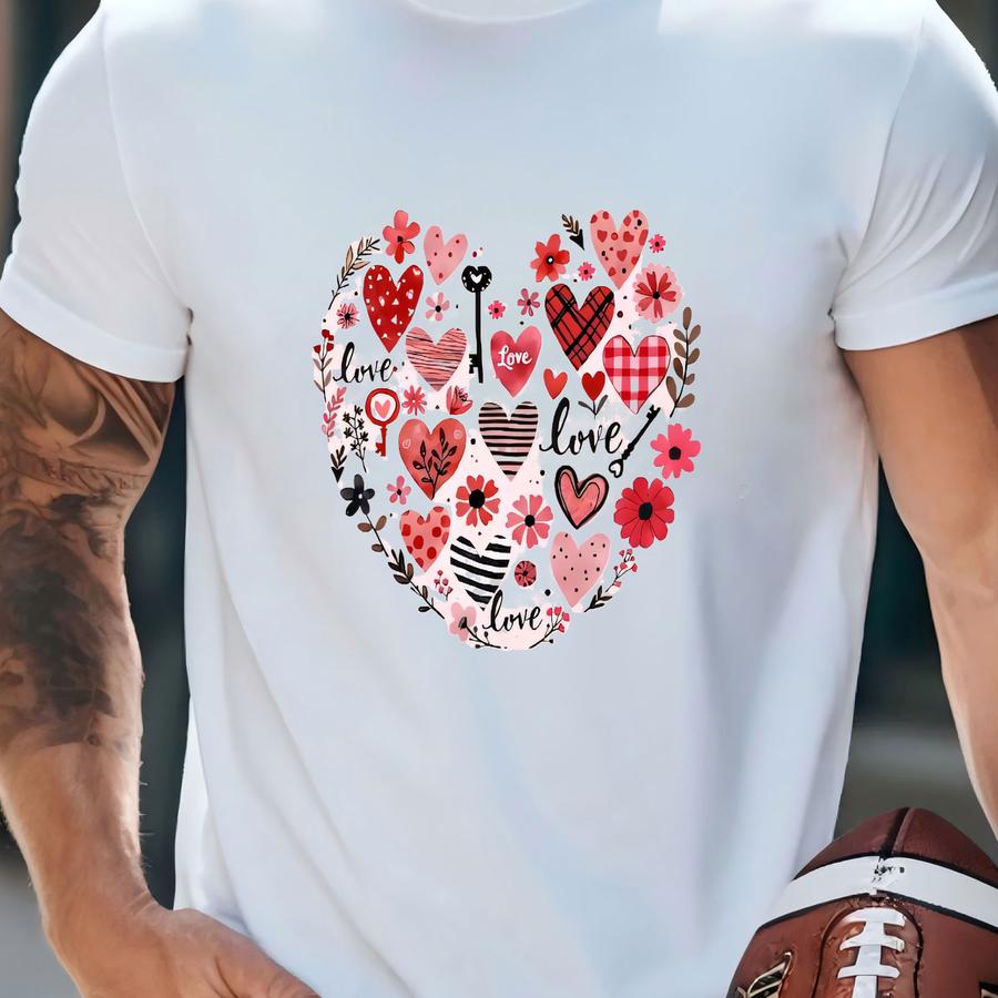 Valentine's Day Heart Collage Shirt: Love Flowers Design T-shirt