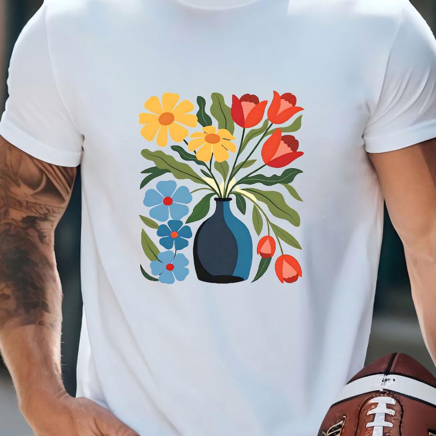 Boho Floral Vase Shirt: Tulips Daisies Bella Canvas Tee T-shirt