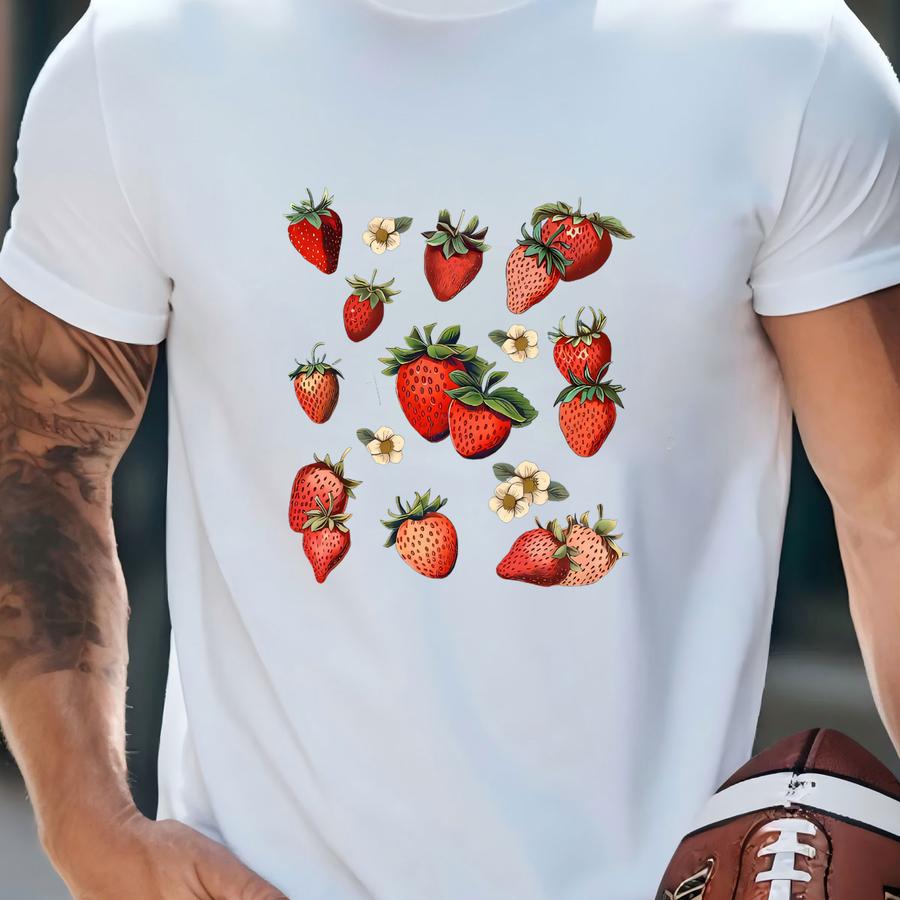 Strawberries Tee, Vintage Strawberries, Collage Of Berries Design On Premium Unisex Shirt, 3 Color Choices, 2x, 3x, 4x, Plus Sizes Available T-shirt