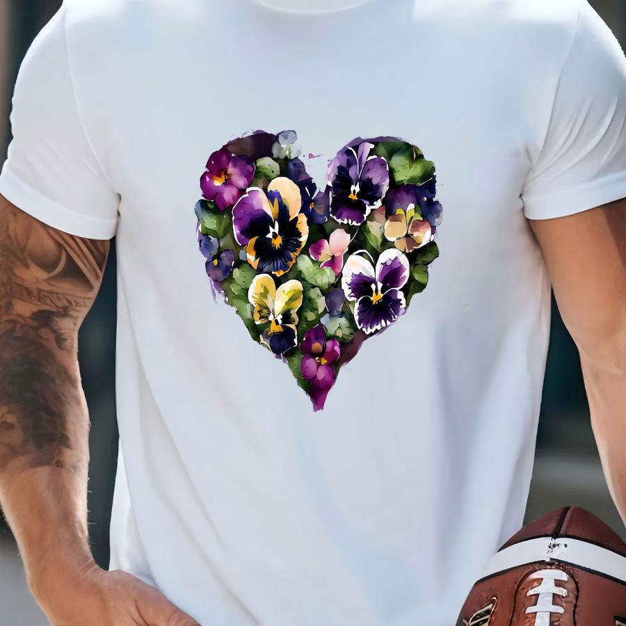 Spring Flowers Tee, Pretty Pansies In Heart, Pansy Flowers Design, Premium Unisex Shirt, 3 Color Choices, 3x Easter, 4x Easter, Plus Sizes T-shirt