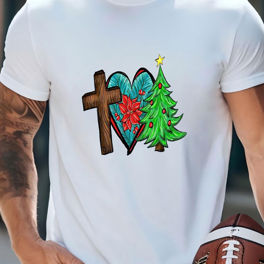 Faith Love Christmas Shirt: Cross, Poinsettia, Tree Design T-shirt