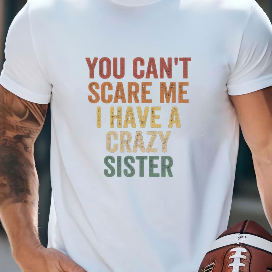 Funny Brother Shirt, Gift From Sister To Brother, Perfect Gift For Siblings, You Can't Scare Me I Have A Crazy Sister, Birthday Present T-shirt