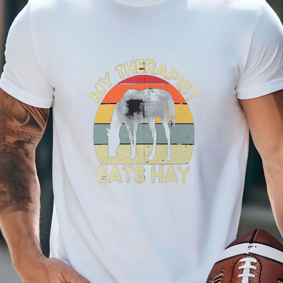 Vintage Horse Lover Cap, My Therapist Eats Hay, Distressed Black Hat, Unisex Farm Cap, Gift For Equestrians, Relaxed Style, Funny Horse Gift T-shirt