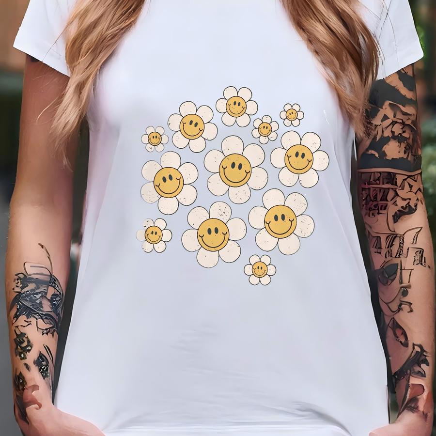 Face Shirt Retro Daisy T Shirt Emoji Shirt Summer Tee Boho Smile Shirt Vintage Happy Face Shirt Cute Flower Shirt T-shirt