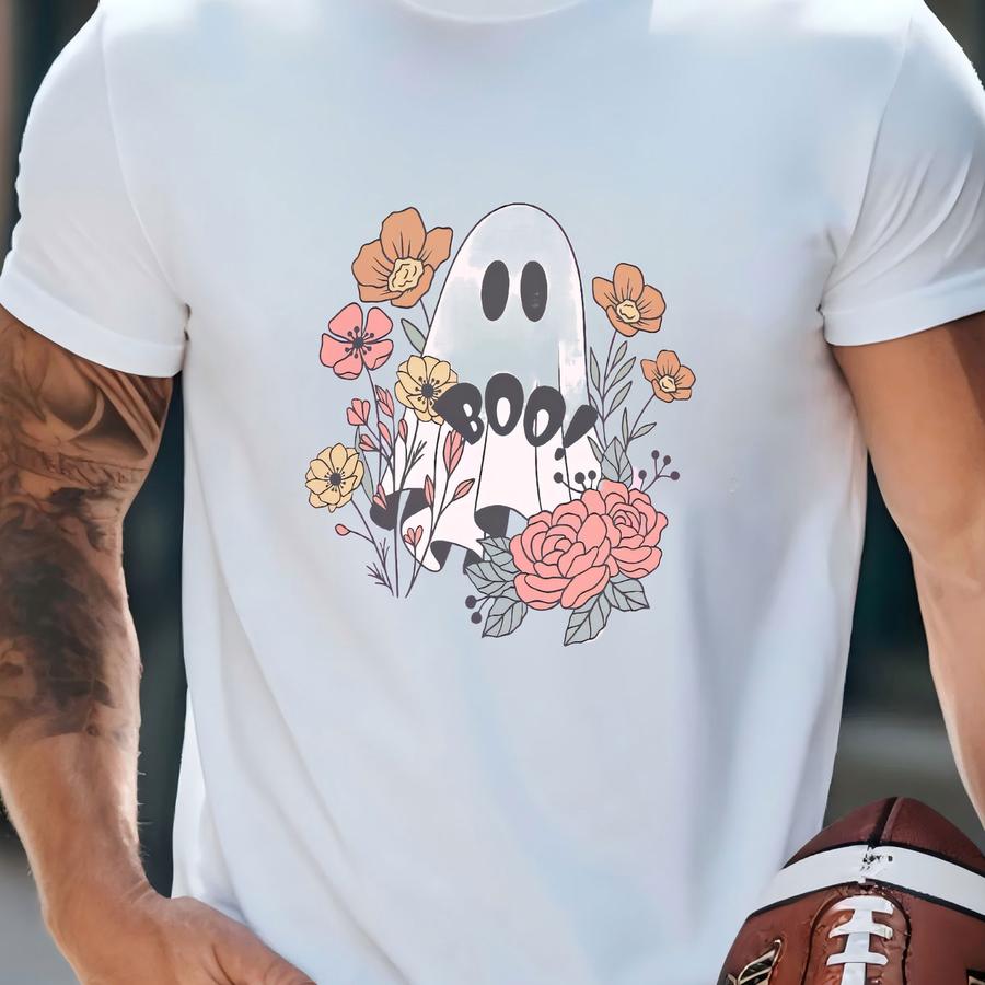 Boho Halloween Sweatshirt, Boo Sweatshirt, Floral Ghost Crewneck, Spooky Season Fun Fall Crewneck Sweater, Autumn Pullover, Boho Ghost Crew T-shirt