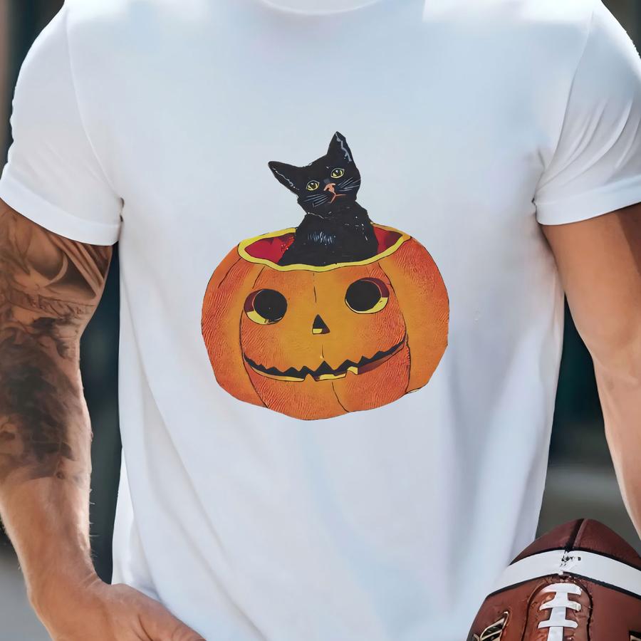 Vintage Halloween Shirt, Shirt, Black Cat Shirt, Cat Lover Shirt, Pumpkin Shirt, Pumpkin Cat Hoodie, Retro Halloween Hoodie T-shirt