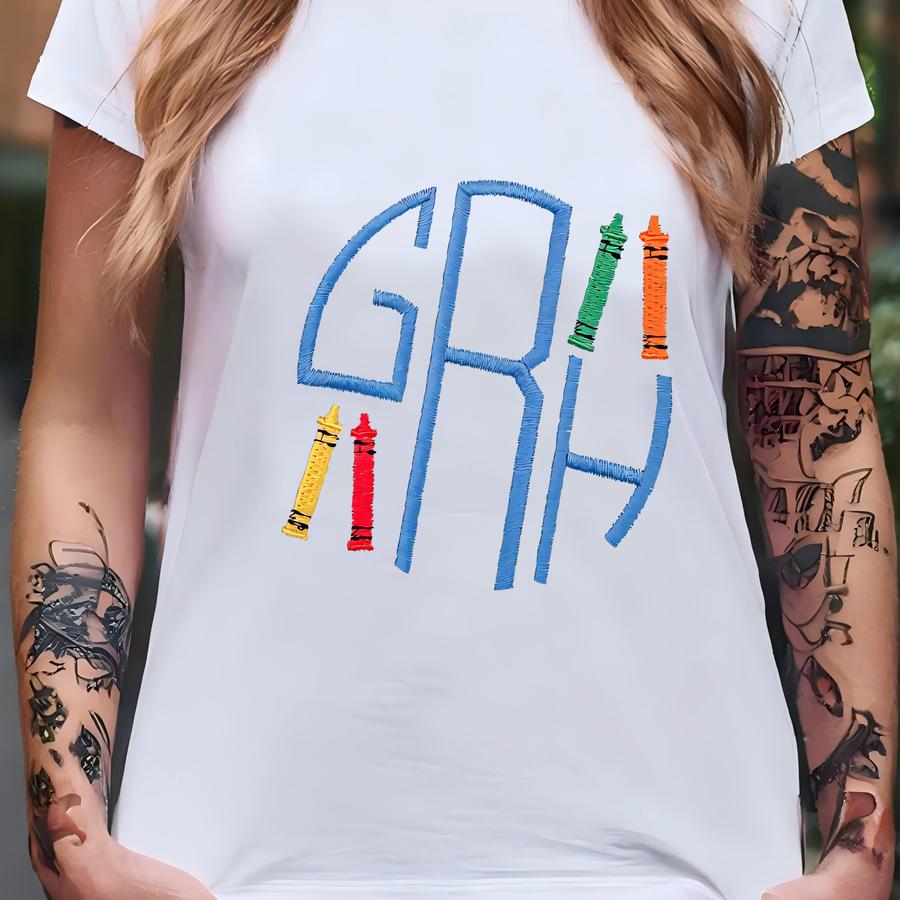 Back To School Shirt, Back To School Monogram Shirt, Crayon Name Font Shirt T-shirt