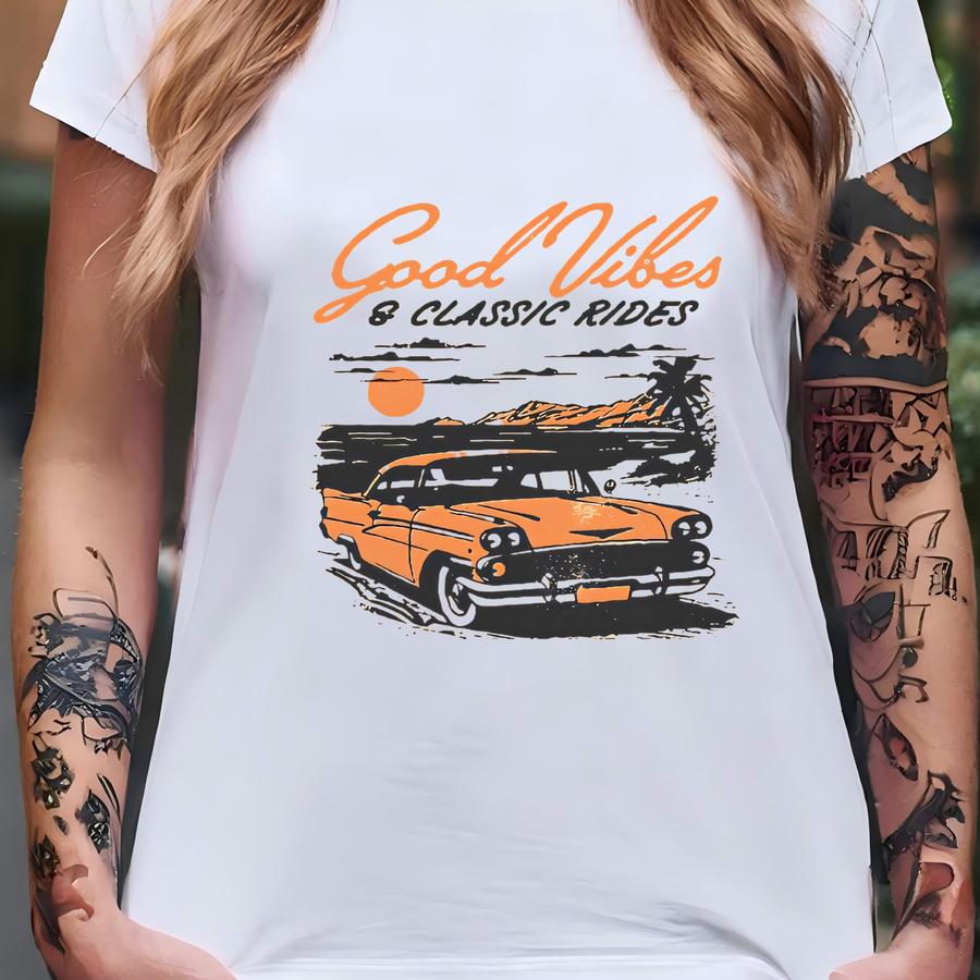 Good Vibes Classic Rides Tee, Retro Vintage 1950's 1960's Car, Hot Rod Summer, Beach Vacation Hoodie Graphic T-shirt