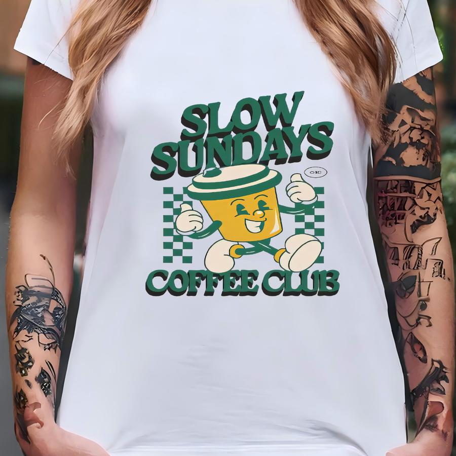 Slow Sundays Coffee Club Hoodie: Retro Graphic Tee T-shirt